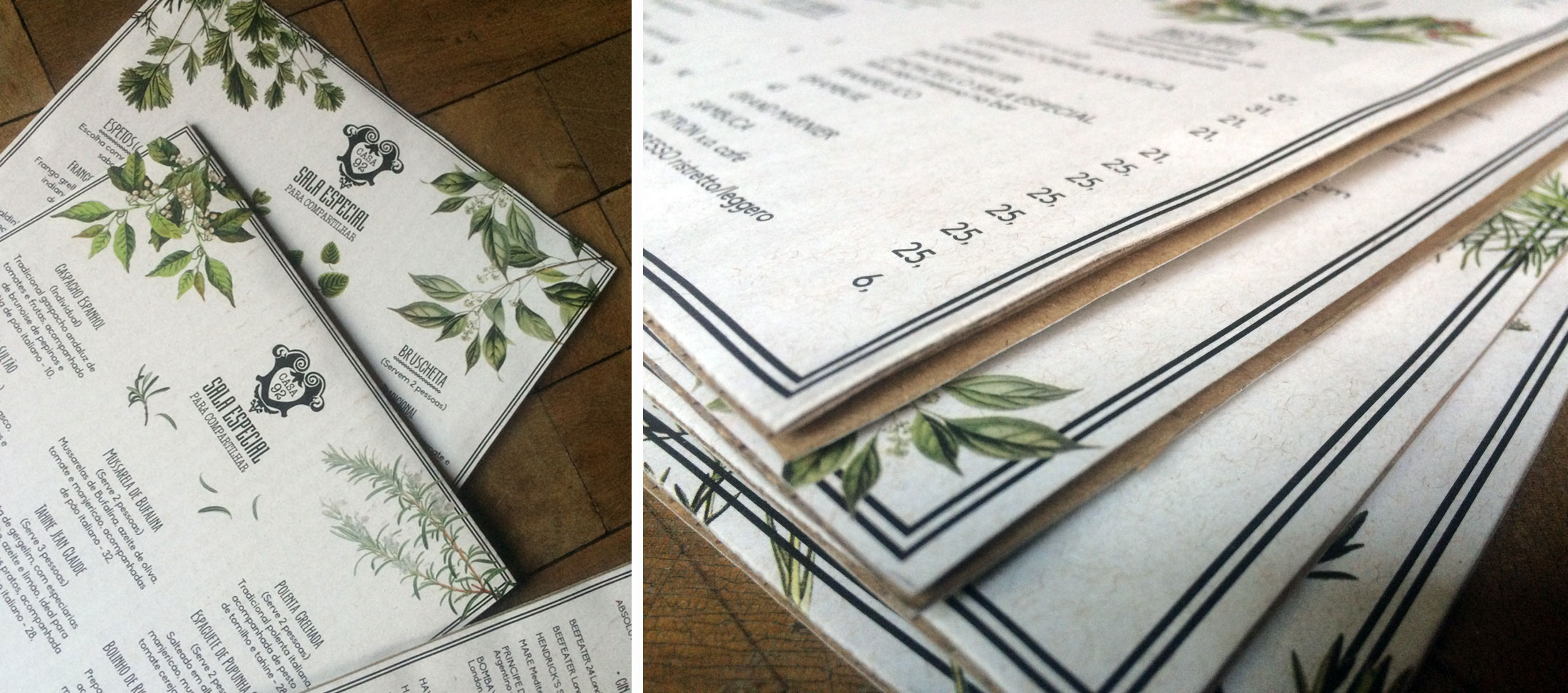 Novos cardápios, porta contas, cartões de visita, desenvolvidos com papeis de linguagem mais orgânica e ilustrações de ervas, temperos e especiarias… Deliciosos!